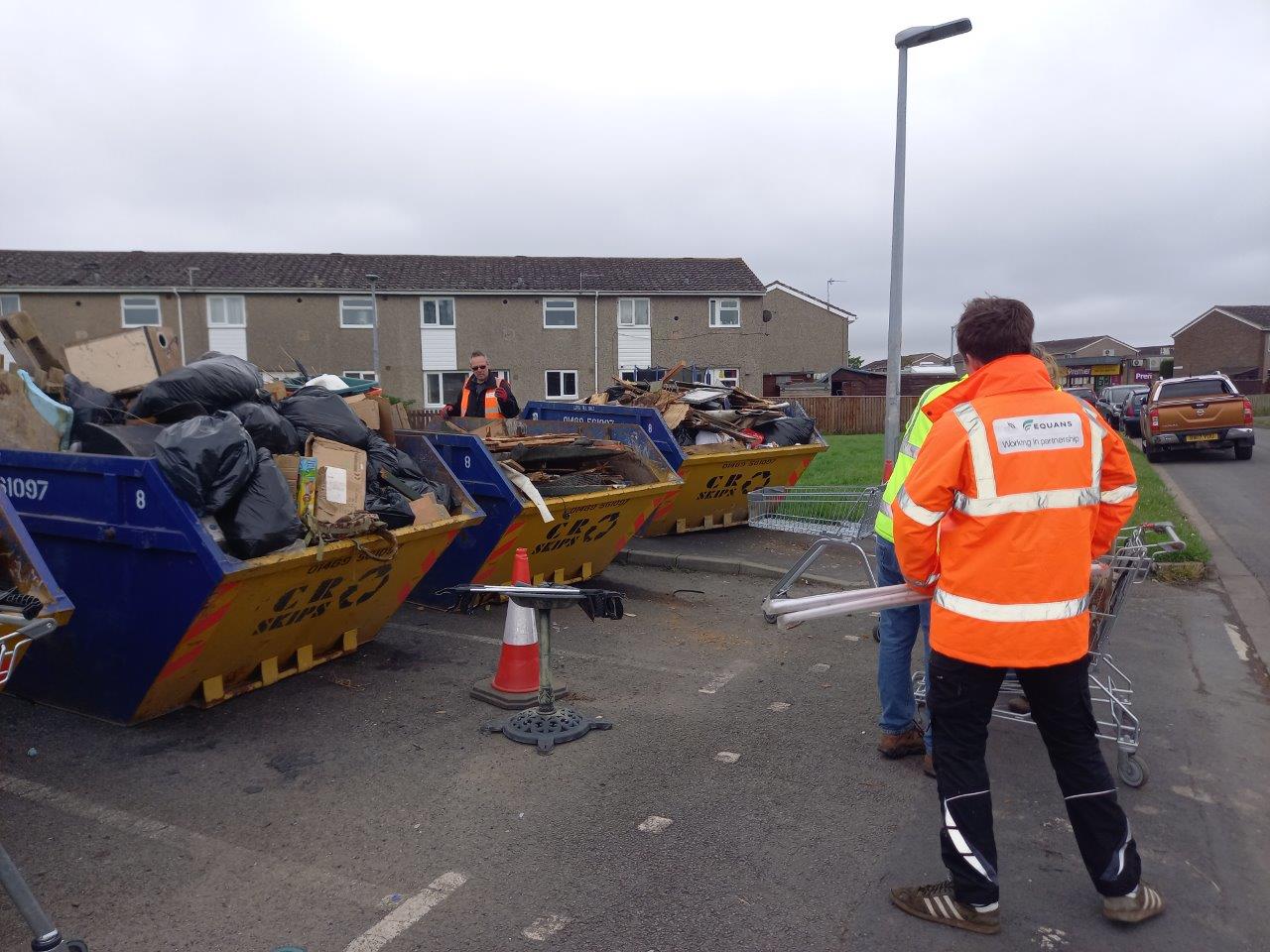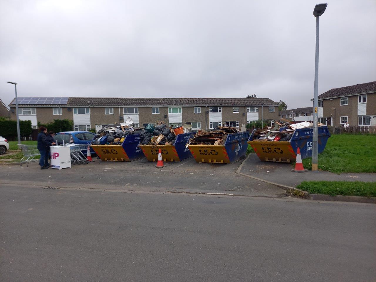 Fast forward to last Friday (12th May), where we pulled off the biggest clean-up event yet. We filled a whopping SIX skips, gave service roads, gardens, and paths a proper tidy up. We also chatted with locals about recycling, getting rid of waste properly, and how to stop fly tipping. Our friends at Equans, Longhurst, Humberside Fire & Rescue, and Humberside Police all pitched in and helped residents spruce up the area. The skips – kindly provided by CR Skips – were overflowing in no time!