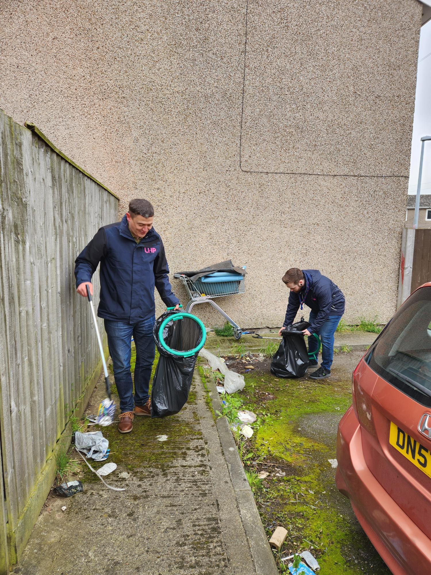 The first mission was to get rid of some abandoned cars. These were swiftly removed – making the area look better already! Then in March, we linked up with the folks at Longhurst, Equans, Phillips 66, Immingham Town Council, and Humberside Fire & Rescue. Together we set out to pick up litter around Kennedy Way and the flats at the back of Washdyke Lane.